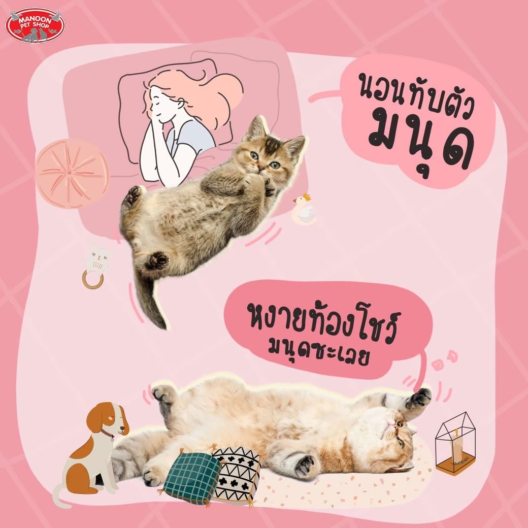 - หงายท้องโชว์ ทาสแมวทุกคนรู้ดีว่าพุงหรือท้องเป็นส่วนที่ไม่ควรเข้าไปยุ่ง หากน้องมีการนอนแผ่พุงใส่เรานั่นคือการบ่งบอกว่าน้องไว้ใจและรู้สึกปลอดภัยอย่างมากเมื่ออยู่กับเรา