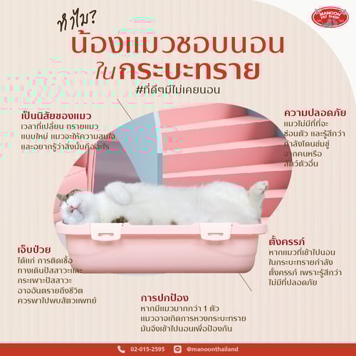 เคยสงสัยบ้างไหม ? ว่าทำไมน้องแมวชอบนอนในกล่อง ในกระบะทราย ที่นอนอุ่น ๆ หรือที่นอนดี ๆ ทำไมไม่ไปนอน วันนี้มนูญได้รวบรวมสิ่งที่เหล่าทาสต้องรู้มาไว้แล้ว ไปดูกันเลย